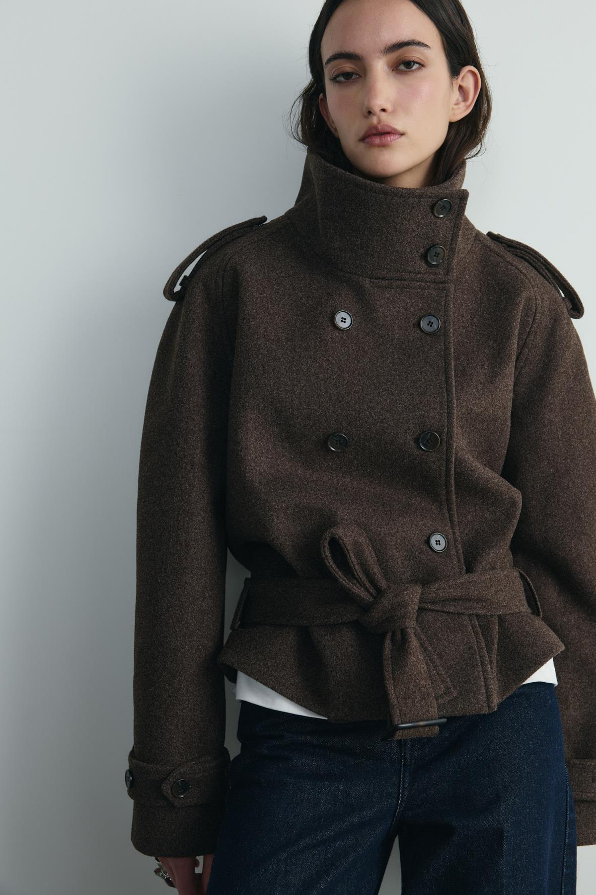 Urban Kaşe Ceket dik yakası ve hacimli kollarıyla modern ve güçlü bir duruş sağlar. Yaka detayı ve yün içerikli kumaşıyla en soğuk kış günlerinde bile sıcacık tutar.